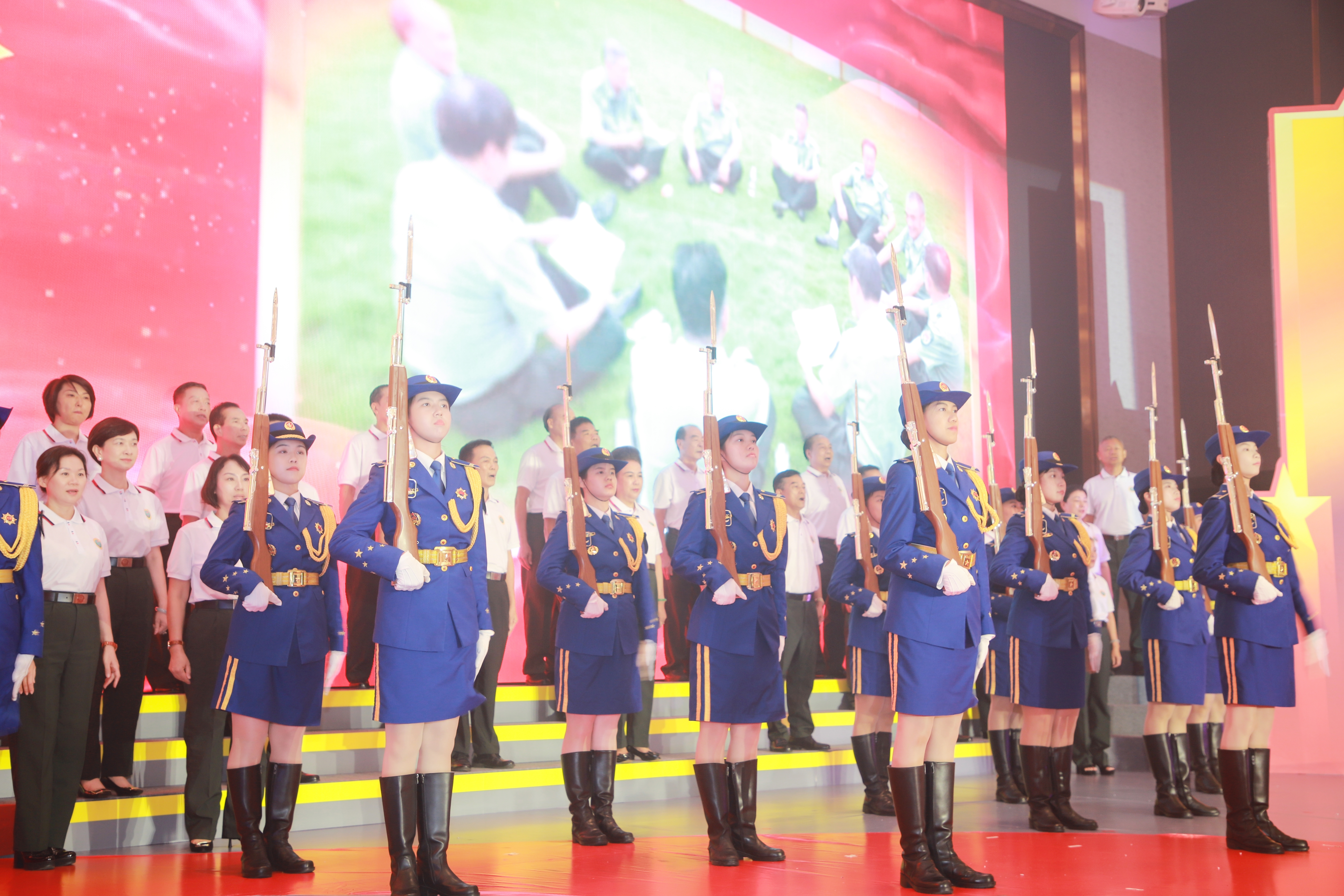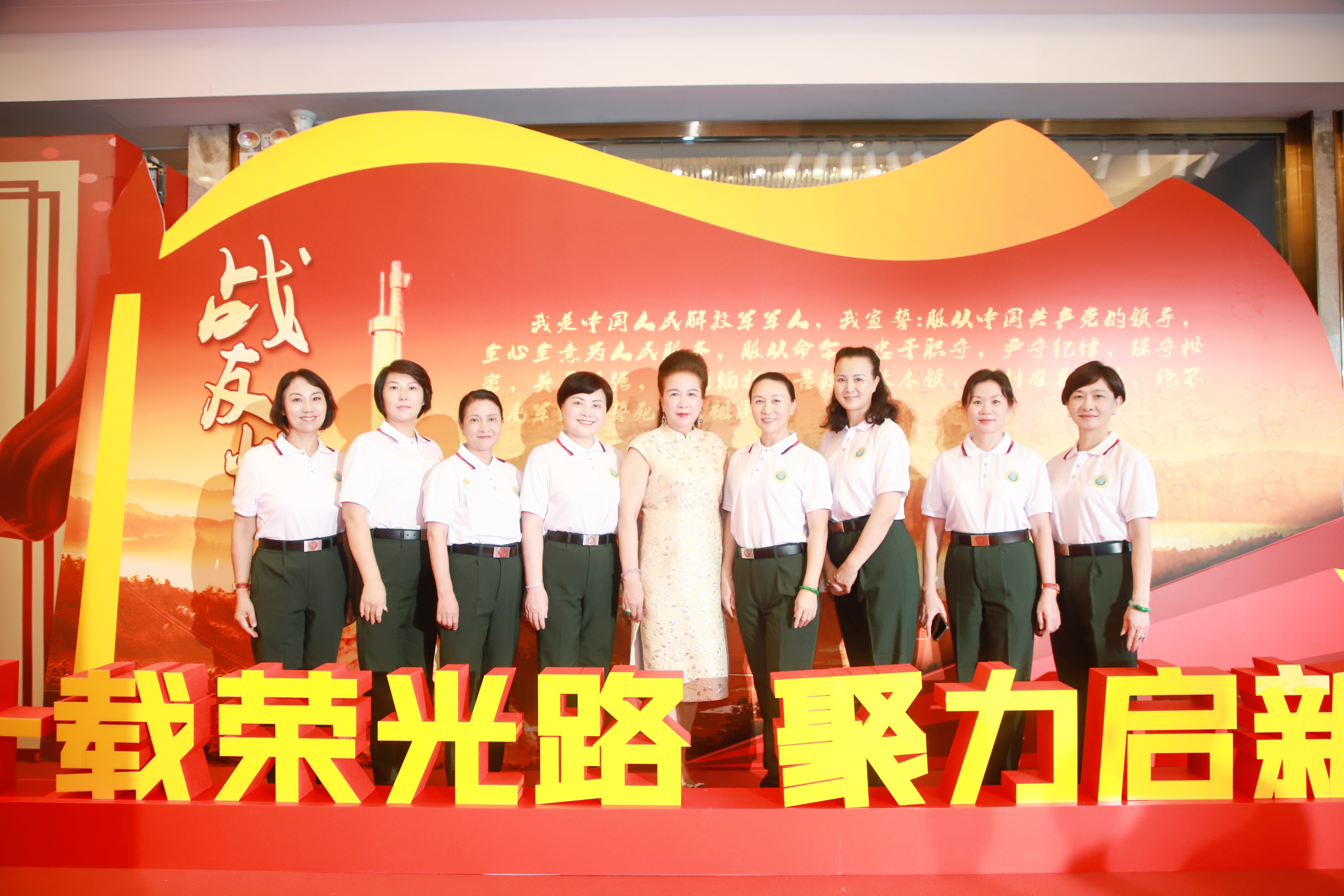 爱促会荣誉会长、东莞女商会长方桂萍带领东莞拥军支前工作队女兵分队参加了活动并精彩出演了《强至战歌》。