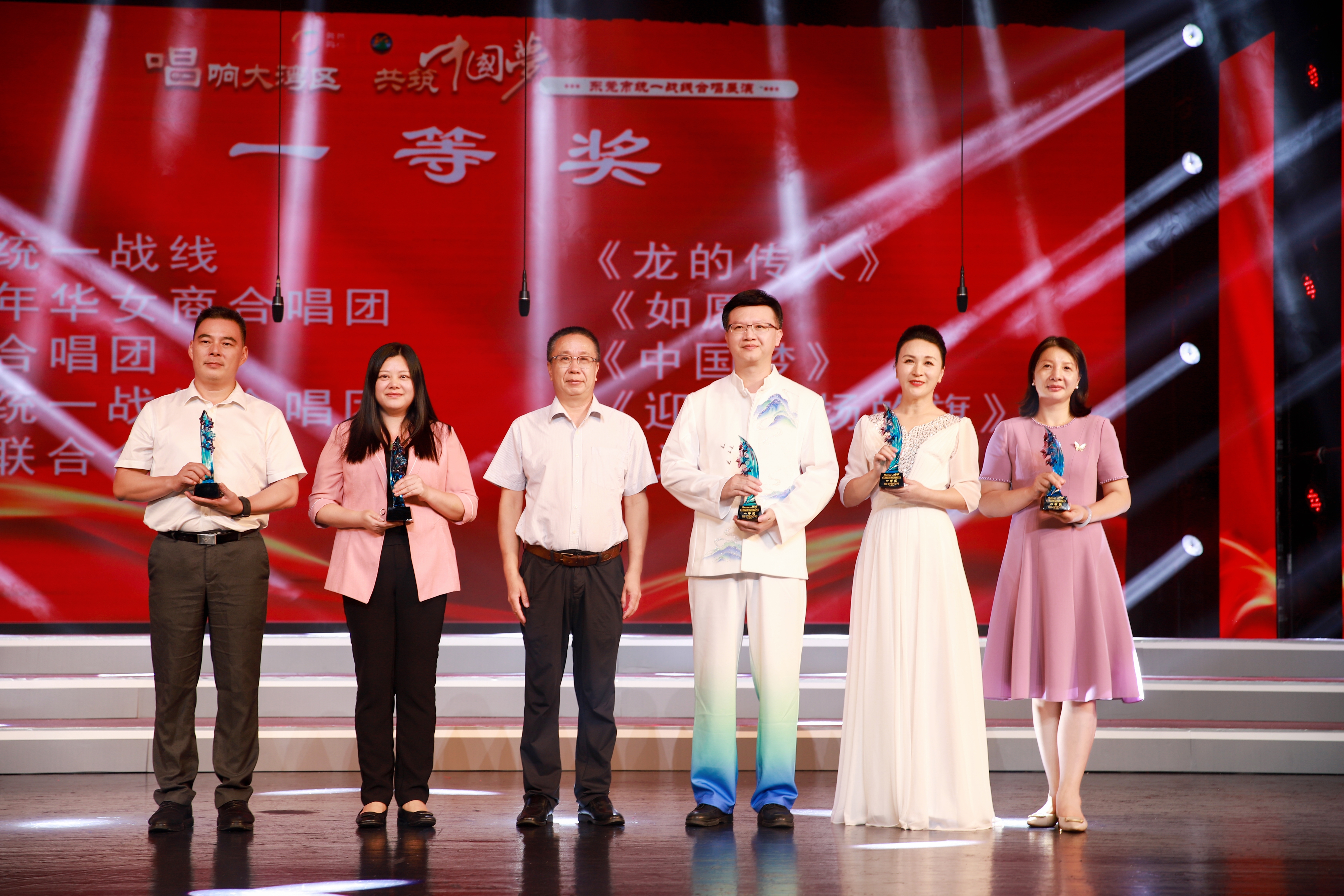 最终,花样年华女商合唱团、南城统一战线合唱团、侨界合唱团、塘厦统一战线合唱团、新阶联合唱团获得一等奖。东莞高级中学少数民族合唱团、同心追梦合唱团、沙龙合唱团、内地港人合唱团、香港莞籍社团合唱团、凤岗镇客侨风艺术合唱团、东莞市台商协会合唱团获得二等奖。东莞市台商协会合唱团、香港莞籍社团合唱团、花样年华女商合唱团、南城统一战线合唱团、塘厦统一战线合唱团获得最佳组织奖。合唱团钢琴伴奏荣获最佳伴奏奖。